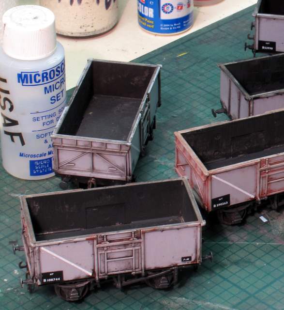 Of late I’ve had the pleasure of helping out on Roy Jacksons Retford layout. Roy’s vision is to see Retford as it was in the late 1950’s, this includes the trains and their correct formations as well as the scenic side. I started weathering my own stock quite early on in my modelling development, and in the depths of the redundant stock I had some of my own wagons, which I had decided would need a re-work for my own layouts Albion Yard and Bawdsey. Once I’d got happy with the technique I showed it to Roy, as I felt that the mineral wagon trains would benefit from a similar makeover. Roy’s wagons had been built in the very early 1970’s, were in trains of about 30 or so and had previously operated on his Gainsborough Central layout and then the High Dyke and Dunwich projects. To be able to give an individual look to each wagon was an essential element to the project, also to do it efficiently and without any invasive work on the wagons. After all a good proportion had been working without problems for in excess of thirty years, and the last thing we needed was to affect that reliability.