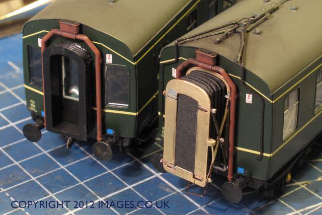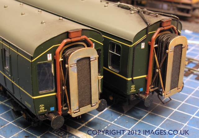 I took the easy way out, I tried fitting the paper concertina bellows into the Slaters unit as a dry run, (see top above), and fitted that to the end of the 108. This showed a massive improvement, so out with the soldering iron and I built them carefully soldering captive washers at the joints to keep the belows active.