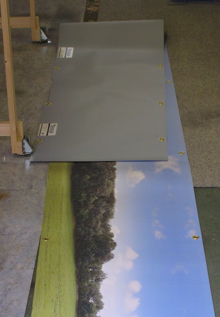 Sorry, I should have been clearer about the ply… I have already built my boards with a ply backscene, but to avoid joins in the sky I’d much rather go down this route and have been thinking about it for some time. I just need something that can roll up for transport to and from exhibitions and find a way to fix it to the ply when unrolled.