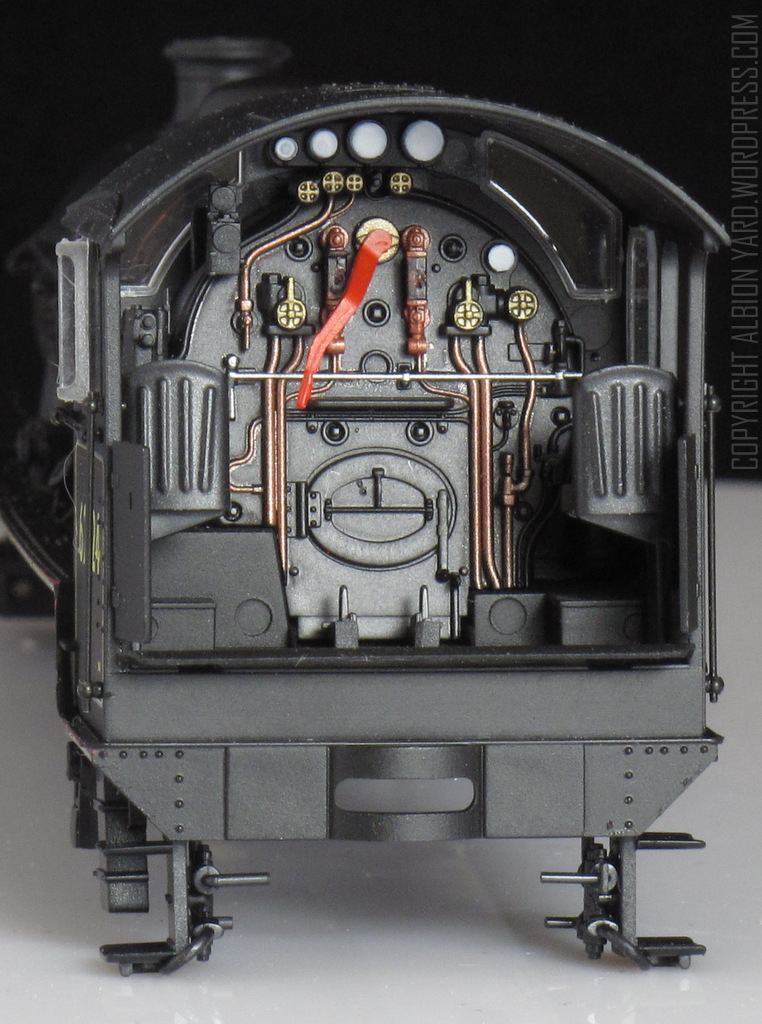 The locomotive body is crisply moulded with very few mould joint lines visible. There is a parallel pair running along the length of the boiler top, but you need very strong lighting to pick that up. The separate components are all fitted well the only issue on mine is on the front smokebox lamp bracket, there’s a slight white marking similar to the blooming you get on paint from superglues. This will be hidden under a coat of weathering, and it’s not particularly noticeable except in direct strong light. The paint finish is a good opaque satin black and the lining and lettering well printed. One of the K1’s has a small hair trapped in the paint on the smokebox, like the blooming above its an easy fix. Cab detail is well picked out and tidily painted the level of detail being appropriate for the amount you can see through cab windows and openings. The lining on the model is very good with no wobbles or misalignments anywhere.