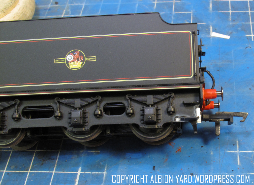 The K1 tenders had vertical ends to the side frames with shorter lower steps. This is quite an easy modification to do involving cutting off the lower steps, shortening them, and then replacing them with the curved ends filled and re-profiled. However, a note of caution. Doing this modification will almost certainly invalidate any warranty on the tender components, and possibly the model as a whole.