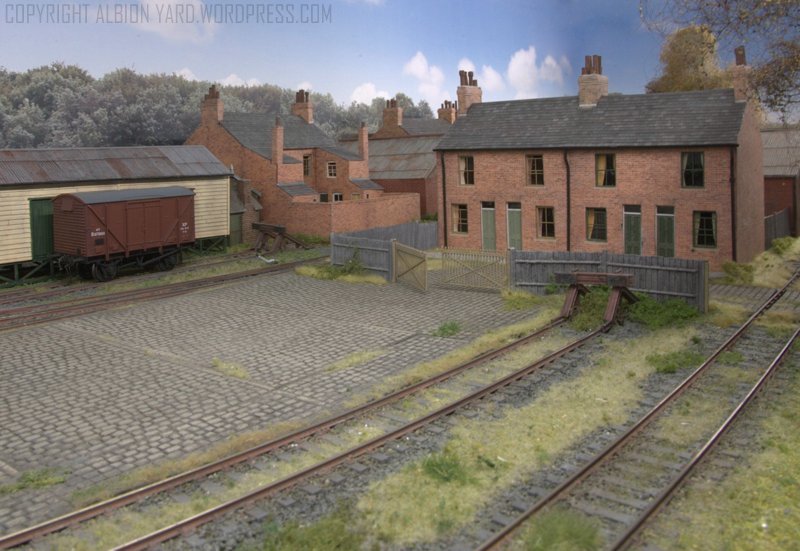 Costs can certainly be a factor, though comparison to other pastimes I feel shows ‘modelling’ as a reasonably affordable hobby. If working to a tight budget, then binning it when things start going wrong or getting really challenging, can’t be cost effective. Where the project come can in useful is as the learning tool, to use it to try the new techniques and processes. Often you hear of people who have had problems with a new technique/process/material where its been tried ‘live’ on a brand new project or model. If you’ve got a part built kit, or layout, old stock, then try the process on that, don’t risk the new ‘thing’! Reading an article or speaking to someone can make many tasks seem easy, particularly if they are proficient at the skillset in question. But they too will have almost certainly had that disaster and sweary, potty mouthed moment along their path too! Albion Yard has given me a few of those moments, but now it works as a layout I can set up and run, and also as a test piece. The two images on this posting show a recent change. The view below shows how it was, the yard was stone sets, they looked ok, but not quite right. The head of page image shows the new yard, its now an earth yard and looks so much better for it, and allowed me to get practise of changing an established piece of scenery for the better.