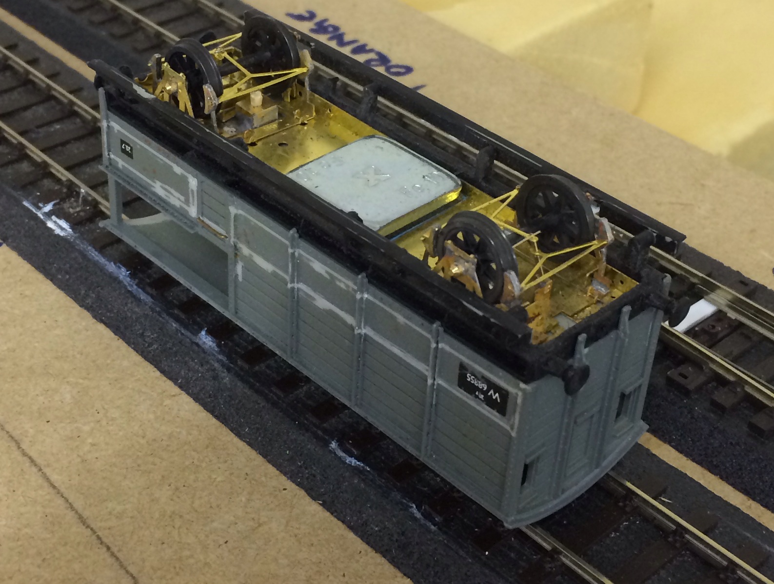 So having built a replacement chassis, I’ve spent an evening or two fitting and fettling it to a Mainline, (today’s Bachmann) Toad. It has improved the overall look, and the running, but it takes a good deal of work to cut the floor away from the original chassis.