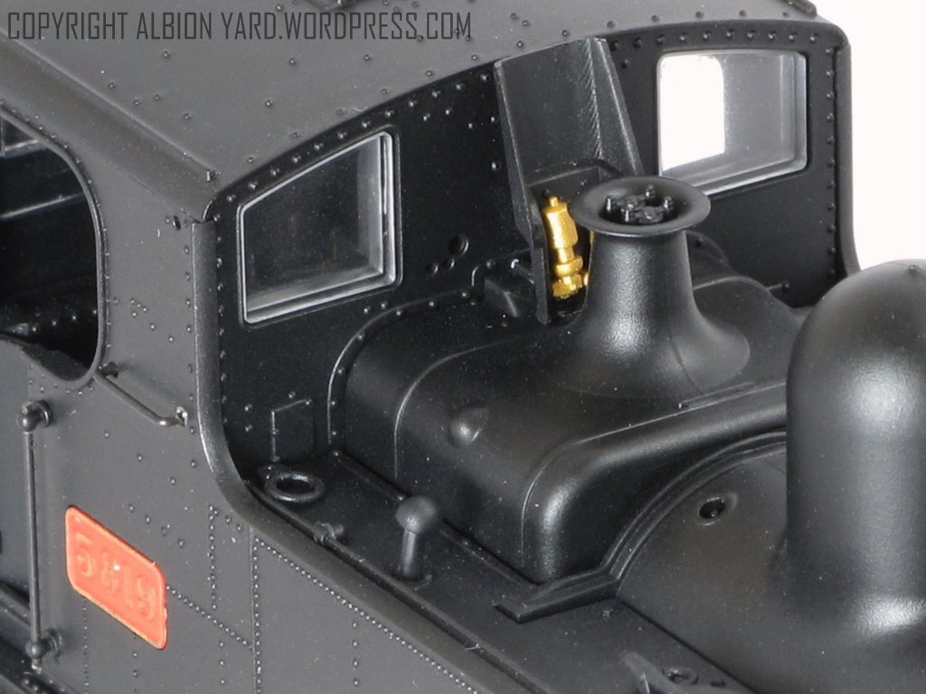 Rear cab windows and their associated protecting bars are well captured, allowing good transparency and light in to the cab. The boiler fittings chimney and dome are for me, ‘not quite there’. The chimney particularly where the base flare meets the vertical stack is too clearly defined, it should be much more subtle, conversely where the dome meets the boiler, the join is too subtle with the dome seamlessly transitioning into the boiler. There is a significant variation on the prototype on how visible this join is, on some engines it is visible but virtually seamless, on others it is very apparent, particularly above the boiler band strap which sits beneath it. Undoubtedly a factor of the panel beaters trade! The dome itself looks to be about 1mm too high perhaps accentuated by the lack of the seam line around the base. The boiler band strap is also missing on this model to represent this join between dome and boiler one of the tasks I’ll consider is adding the missing boiler band with a lining decal, and scribing the missing seam line, or perhaps using an Archers weld line decal to show the join line. The mould line for the boiler runs top center along its length and on this example almost invisible.