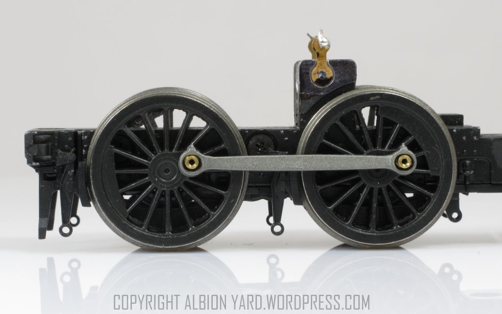 The prototype is quite delicately proportioned, and this shows particularly underneath the footplate. The wheels on the model, even allowing for the demands of 00, are heavy and also look too large, upsetting the finesse of the final product – not helped by the prismatic effect of the moulded spectacles!
