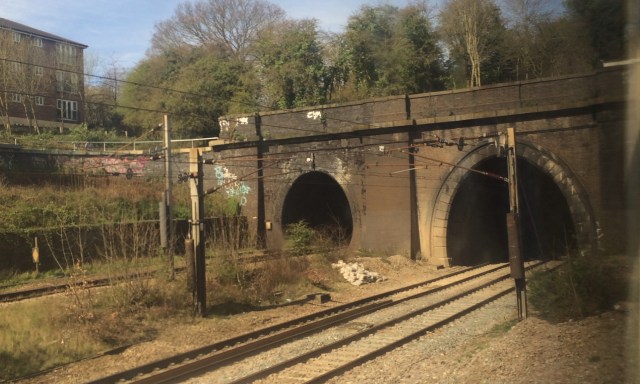 On the journey into town I retraced my old commuting days on the Great Northern, snatching a few shots of embankments, bridges and tunnels for reference to get a feel for the civil engineering I’m likely to have to get my head round with this layout.