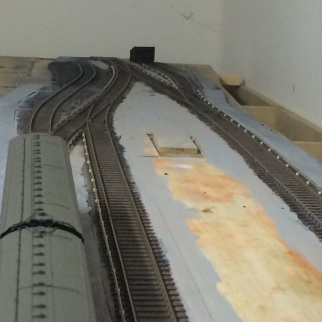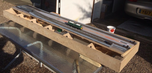 Despite the layout being at such an advanced stage, the chassis and track bed are not yet permanently joined. The layout is designed for DC so there are a good number of section switches to give variety of train positions in the platforms. Keeping chassis and track bed apart made wiring the loom much easier. The design also allows DCC operation, with the limited locomotives and units I’ll be using, I’m seriously considering ‘Touchcab’ as an operating system. I’ve used it with both Simon Thompsons Aberbeeg (S7), and Pete Kirmonds ‘ Laramie ‘, and it’s a user friendly operating system. The other reason for the bare structure is I’m still working the topography of the layout in my head, current idea is based in a cutting, but putting it on an embankment would be more unusual, and a real challenge containing it scenically. Presentation is eye level or thereabouts with view blocking and tightly controlled viewing angles. Once the topography is determined, then the layouts superstructure and lighting rig will be easy to formulate, and then there’s the fiddle yard to build too! I can’t design the fiddle yard until I’ve decided cutting or embankment.