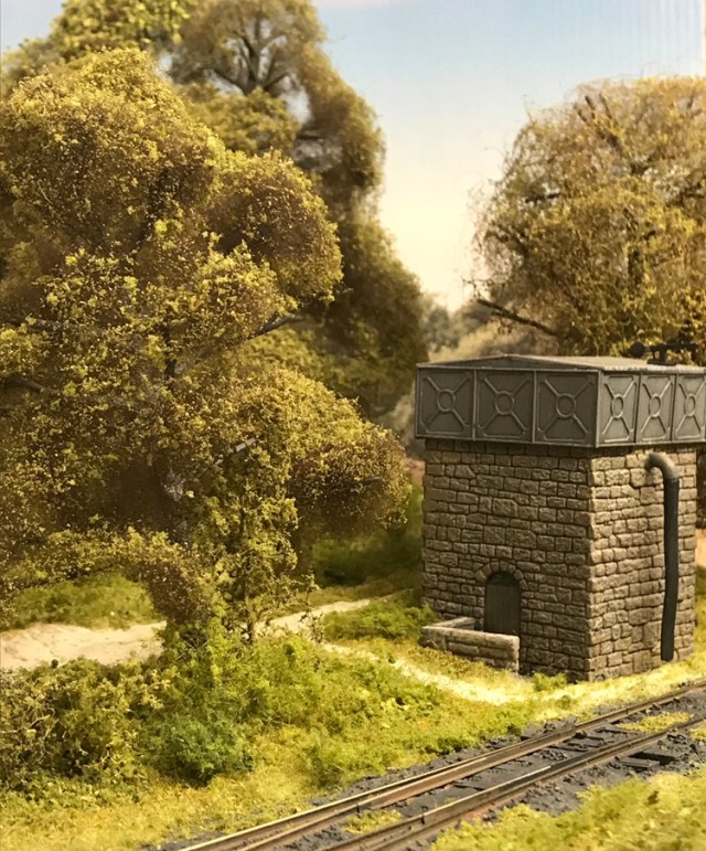 The tree line now reaches down to surround the water tower, the initial idea was that it would be really dense woodland, but giving the trees a bit of breathing space is working, so I’m currently running with that idea. The above shot doesn’t reflect the current build, the trees you see mid foreground will go there, but the water tower is now fixed and I’m working the trees and foliage around it.