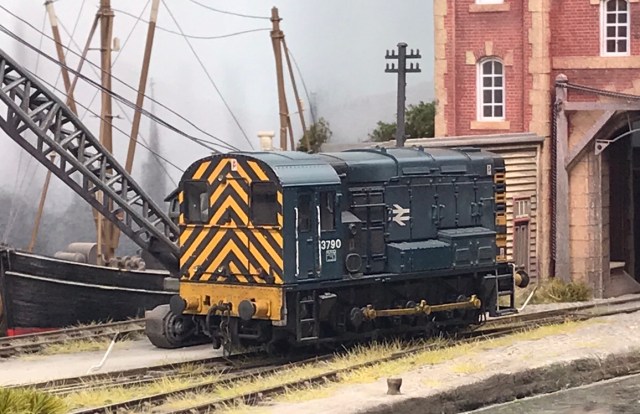 Using a generic light sky blue will throw back a lot of ‘blue’ light onto the layout, so I’m already toning that down with the use of mixes of greys and whites. It might seem a lot of work to do as a test piece, this is 10ft long and 18 inches tall, but this will give me the real impact of the final appearance. It’s quite a quick process, the emulsion and acrylic sprays are fast drying. Whilst I’m confident the blue I’ve chosen is a good base point, until it’s under lighting and ‘joined’ to the existing scenery I won’t really know. As it’s on lining paper I’ll see too how the base coat reacts to being flexed when fitted. Once it’s on I’ll get the right feeling for the colour balance required, and recession needed for the real thing.