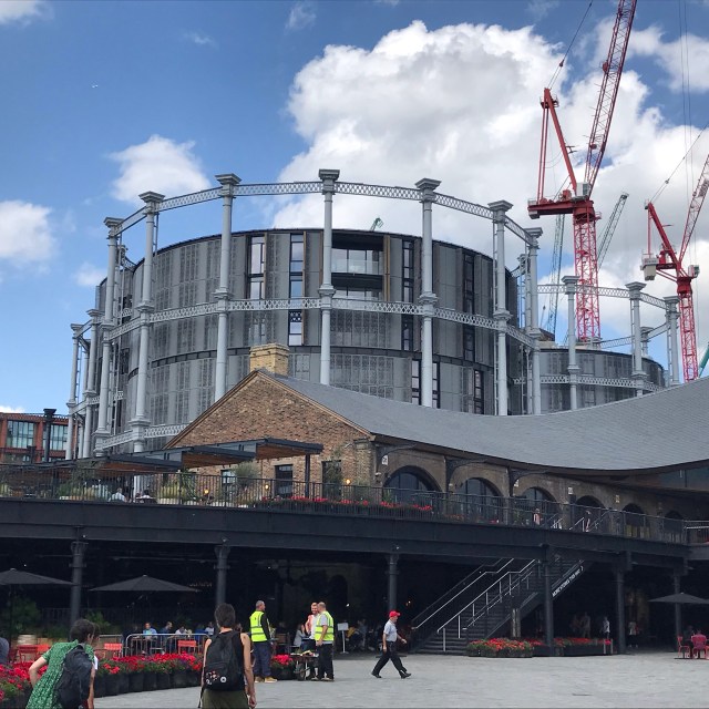 The use of the gas holder structure for new buildings is just genius!