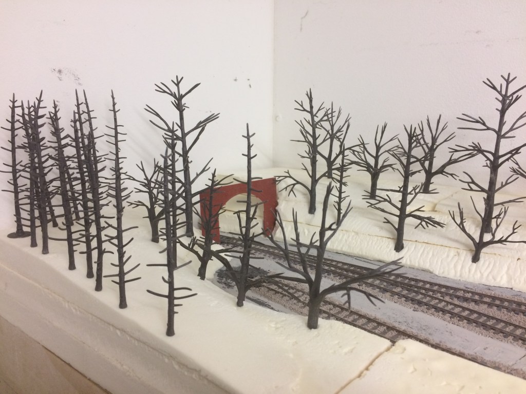 After deciding the final orientation of the layout filling in the blanks as far as the scenics go was quite straightforward if a little drawn out time wise. The core of the woodland is still based on Woodland Scenics large tree armatures and the scenic break bridge is a scratch built model by Geoff Taylor.