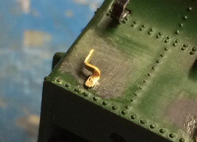 In the two pictures above you can see the cab rear shutters have been removed for replacing, as has the roof vent. With this model I’ve also opened the cab door and removed the coal load allowing the bunker sides to be thinned and adding etched lamp irons.