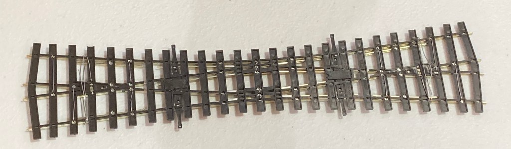 The crossings and slips utilise the same ‘Unifrog’ design as the large radius bullhead points. A quick chat with the Peco staff indicates that if you’re familiar with the Unifrog wiring system, the slips and crossing electrical configuration will be the same.