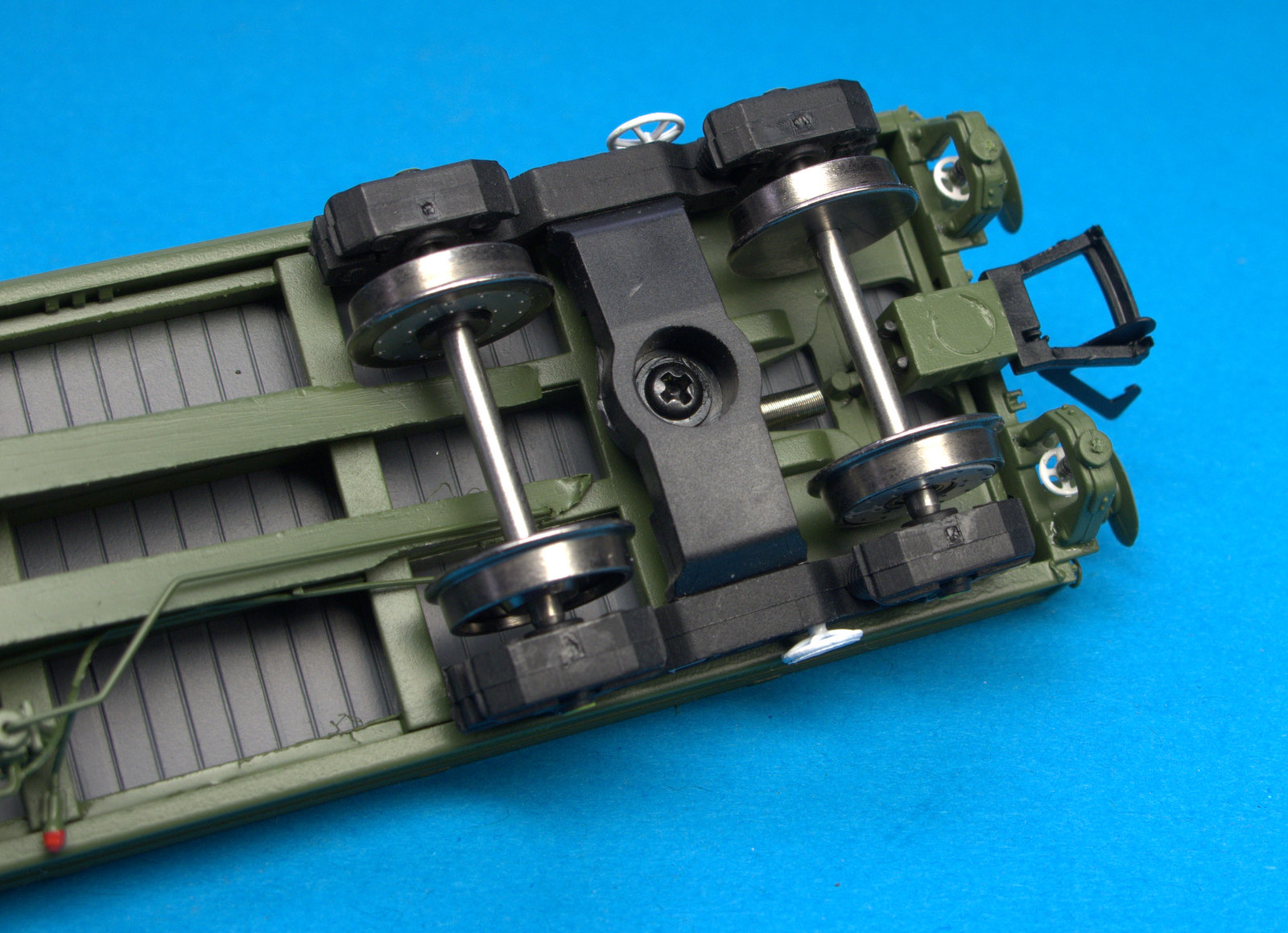 The NEM coupling mounts are fitted to a kinematic system fixed at the ends of the wagon floors. If using three links the housing looks like it can be removed, but as these were samples, the screwdrivers stayed in their box! The chassis as mention above is a metal casting giving an overall weight of around 9 grams, or about the same as a typical sized iPhone for ease of comparison.