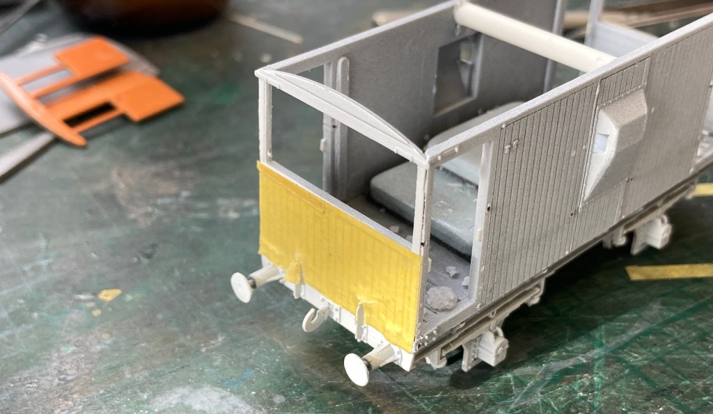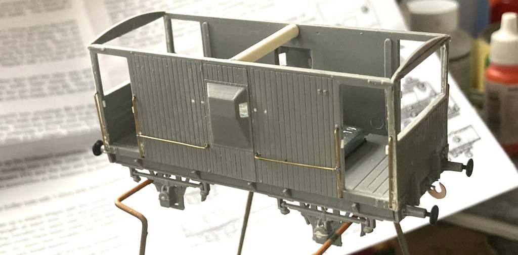 The Toads core structure has been built and some modifications made. As this will be an industrial railways internal use brake van I’ve decided on a simpler handrail configuration seen above. Joining the two inner horizontal rail to the inner vertical is always a bit sporty using a soldering iron, it keeps you honest!