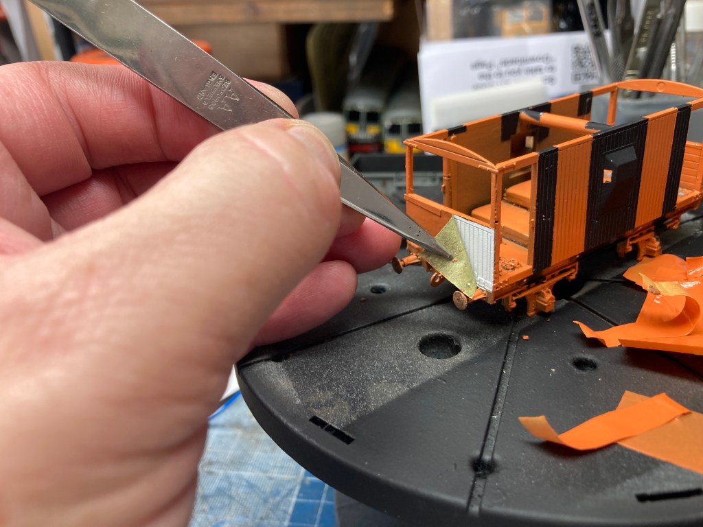This was a really satisfying bit of the task, trying a technique I’d not used before, and finding it works as I hoped it would. Again this acts with considerable impetus to finish the core model, steps, handrails and glasing, then get stuck into the final weathering.