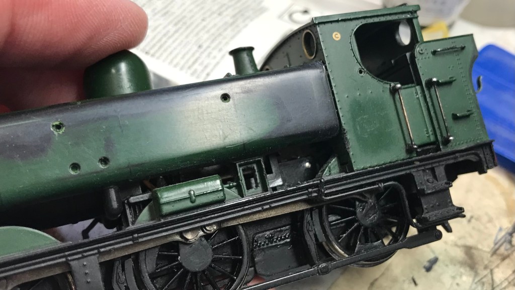 The differences include tank types, tank fillers, tank steps, bunkers, whistles and their respective guards. Cab sides, doors and other njectors akdo enter the mix in this mass of detail variations. For example in the above picture we can tell this is an early GWR version, no top feed, no cab side doors, no whistle guards, no bunker steps. Looking at other EP’s we can see the changes where the prototype developed over the years, and these changes reflected in the tooling and details fitted to individualise each model as we see in the model below.