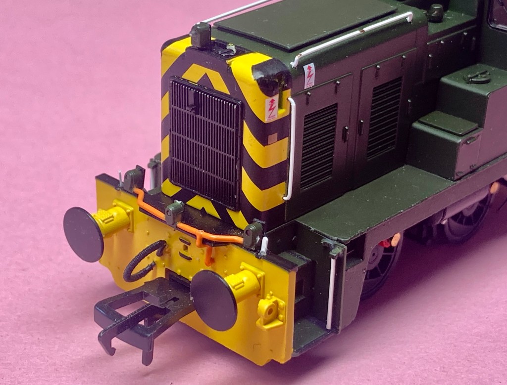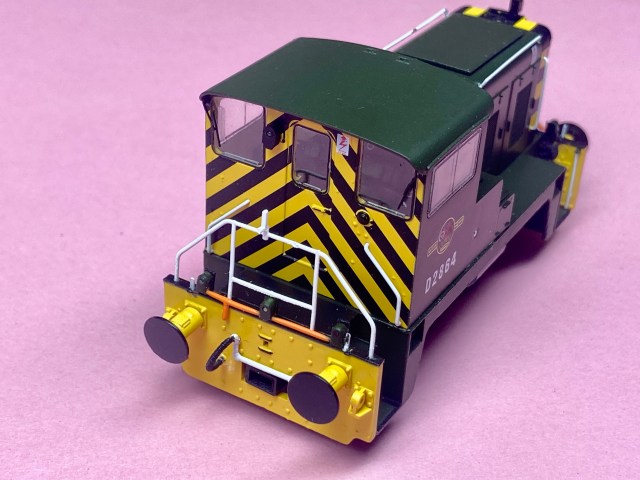 First impression often counts for me, and the Heljan 02 hits the mark immediately and doesn’t disappoint. It immediately looks in proportion, edges are well defined and thin, particularly the cab roof edges and the color is a good opaque satin finish. Detail fittings are all correctly fitted and square and no evidence of excess glue around them. There are no paint blemishes and the detail printing is legible and clear. The wheel tyre faces are painted black giving the wheels a pleasing uniformity, the brass crankpins do stand out a little but a touch of red paint will easily resolve that small inconsistency. The prototype over its many years of service remained pretty much unchanged. For the livery as supplied it appears that Heljan have all the variations correct on this model and cross checking my available drawing (OPC Pictorial Record of the Diesel Shunter), the dimensions are correct too. Barrow Hill Roundhouse assisted Heljan with their 02 for data collation and research.