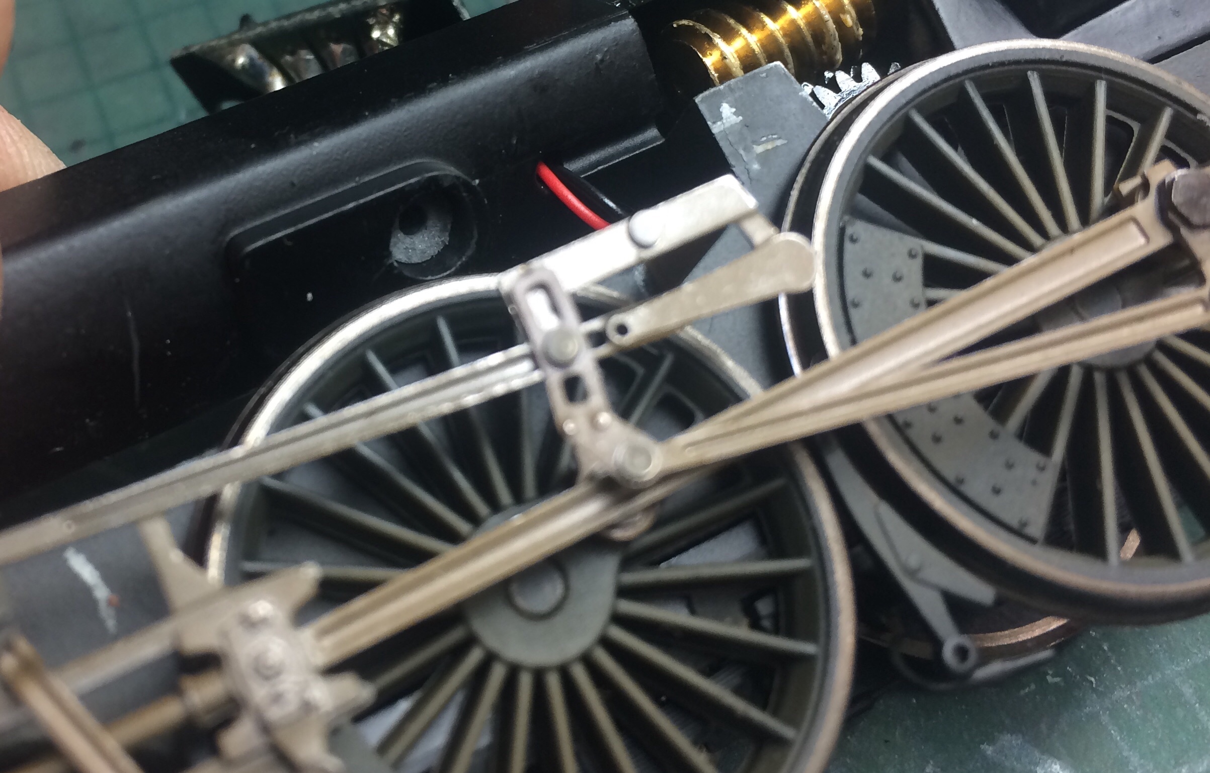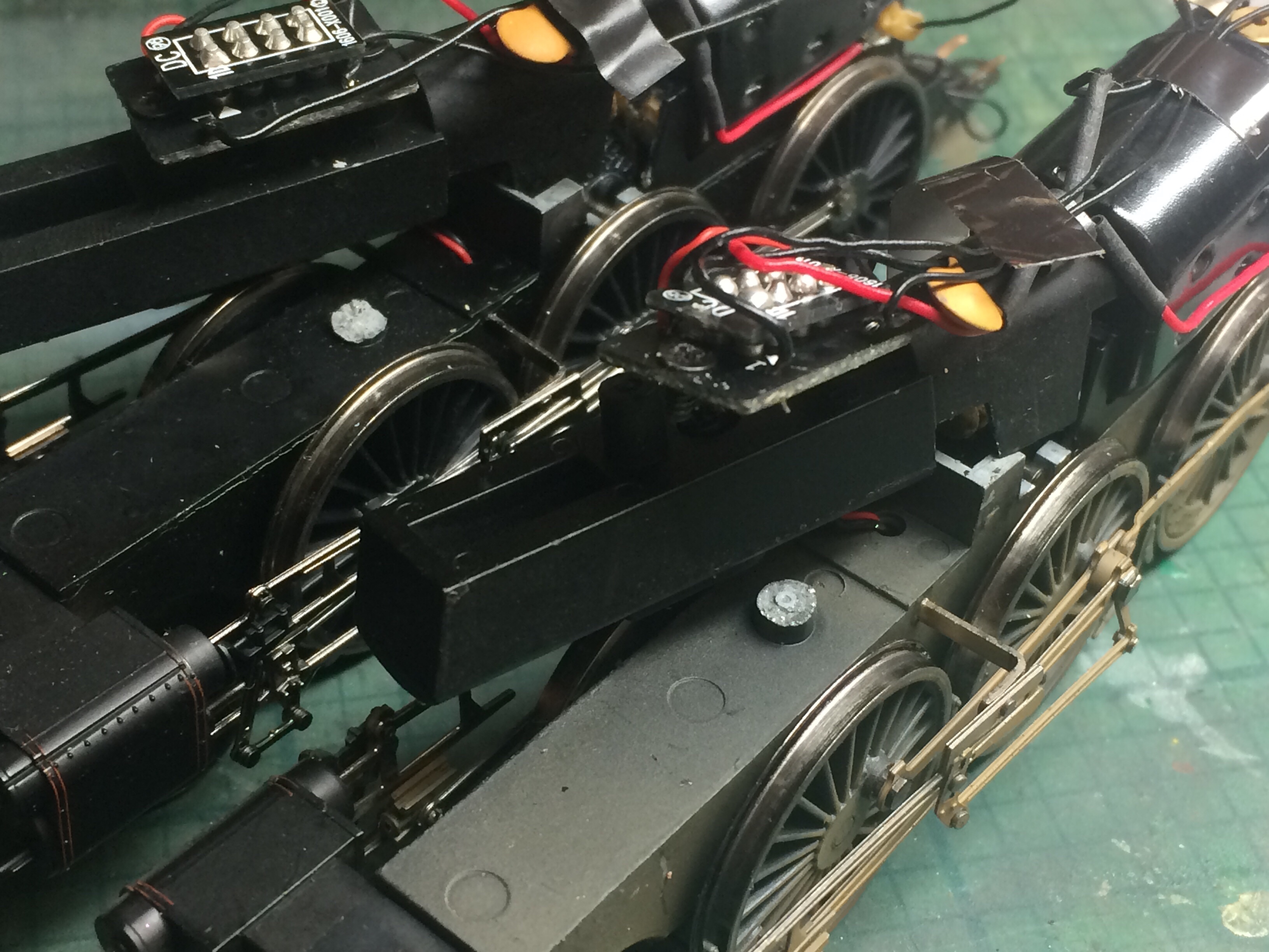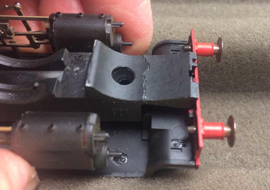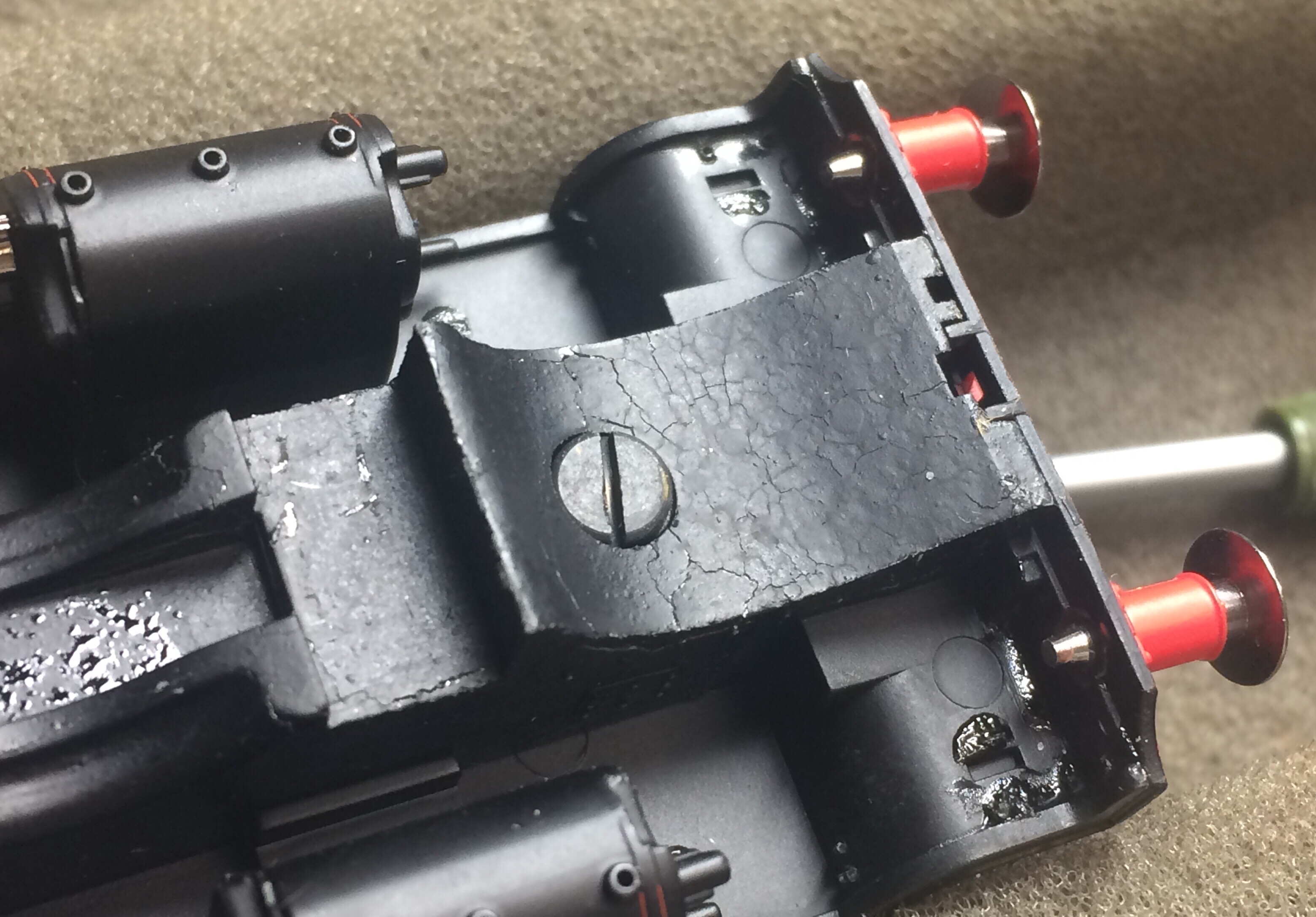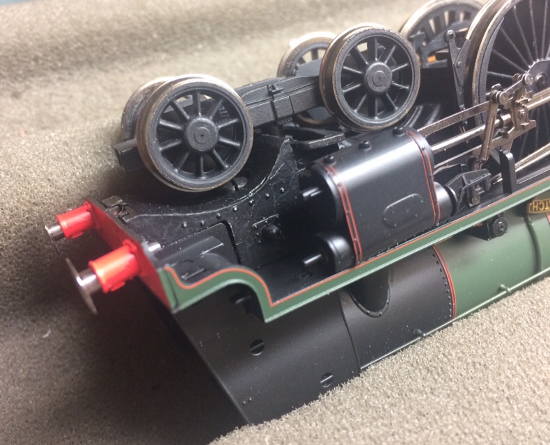The first thing to do is decide what will be painted, I chose to leave the wasp markings on the ends and the chassis as supplied. The best way to paint something like this is in sub-assemblies and fortunately the Heljan 07 is easy to take apart. As written in the instructions underneath the body at each corner of the chassis, there are four crosshead screws, undo these and the body assemblies can be gently lifted off the chassis. The footplate handrails can also be removed from the long and short bonnet sections, this will make masking and painting much easier.